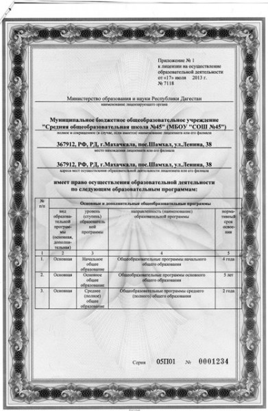 | Адрес местонахождения образовательной организации* | 367912 РД г. Махачкала, пос. Шамхал ул. Ленина 38 |
