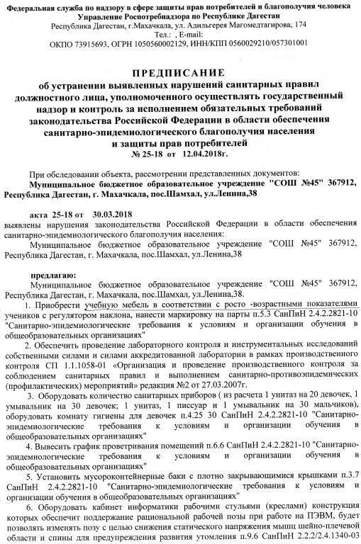 Предписания органов, осуществляющих государственный контроль (надзор) в сфере образования, отчеты об исполнении таких предписаний (при наличии)